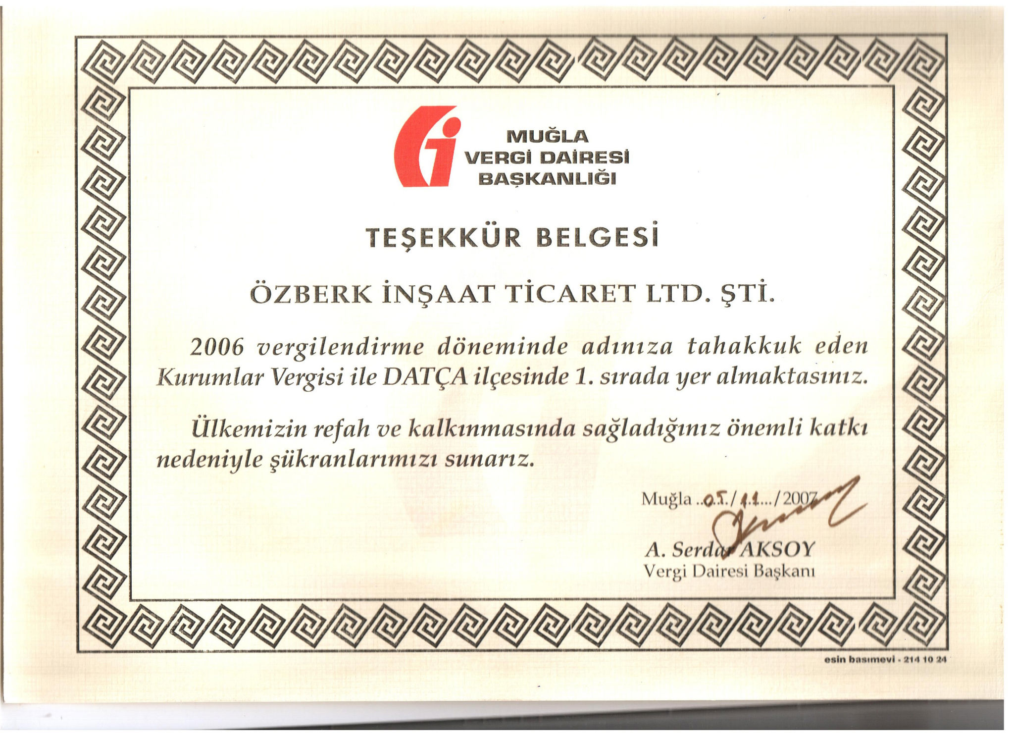 Firmamıza Verilen Bazı Takdir Belgeleri